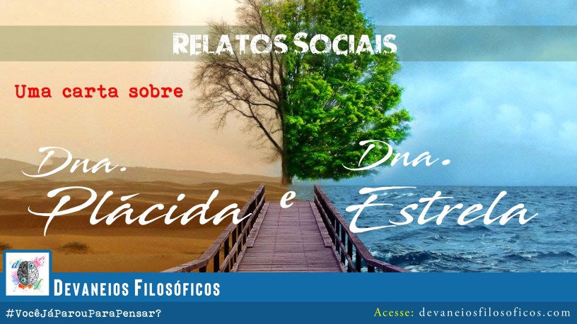 Essas são elas, Dna. Plácida e Dna. Estrela! Representações vivas de muitas outras estrelas plácidas que, podendo brilhar e vibrar a elevadas frequências, contentam-se em morbidamente serem apagadas dia após dia! Mas cuidado! Perceber a vida de Dna. Plácida e de Dna. Estrela como antagônicas – ou seja, que uma ocorre em contrário à outra – seria aceitável apenas se isso fosse fruto de uma leitura rápida e desatenta.