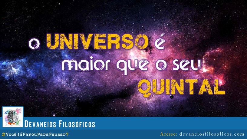 Por hoje, é isso! Podemos expandir mais os nossos limites observacionais para além do espaço ao qual chamamos de “nossa vida“. É compreensível que a nossa percepção de mundo dependa do quanto nos relacionamos com ele, e que isso esteja diretamente ligado ao volume de informações que recebemos ao longo da vida. Seria incoerente exigir de uma pessoa que vive em regiões mais isoladas e com menos comunicação saiba exatamente como vivem as pessoas ao redor do mundo. Da mesma forma, não podemos acreditar que o acesso à grande massa de informação seja sinônimo de ter todas as informações. Por outro lado, o simples fato de percebemos quão grande e quão diverso é o planeta Terra nos permitiria cometer menos erros, que em várias ocasiões inclui colocar pessoas, hábitos, culturas e conceitos em caixinhas. Suspeito de que tendemos a enxergar a vida a partir dos aparatos que possuímos, usamos nossas experiências como lentes para explorar o mundo e, às vezes, fotografamos algumas cenas e as imprimimos, fazendo disso um retrato da sociedade – mas nem sempre esse retrato diz respeito ao todo. E se considerássemos outras dimensões de olhares e passássemos a nos questionar sobre o mundo e sobre as nossas próprias impressões? Pense, então, no que aconteceria se expandíssemos a nossa gama de observação para o universo, que é infinito. Ficaremos praticamente convencidos de que não sabemos de nada mesmo. E você pode considerar a palavra universo como o Universo, do ponto de vista científico, ou como algo menos formal e mais filosófico, que seria a infinidade de possibilidades às quais estamos sujeitos (mesmo que não as percebamos). Inevitavelmente constataremos que o universo é maior que o nosso quintal.