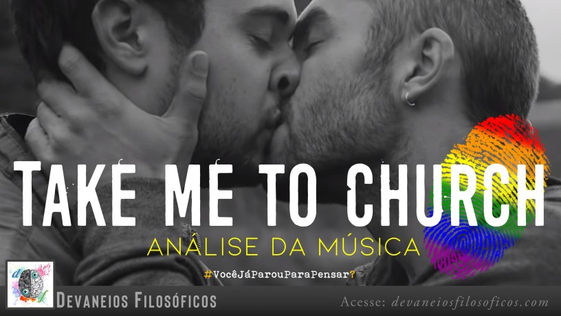 Por fim, espero que essa breve análise da letra de uma grande música sirva de reflexão para você. Vale ressaltar que, embora eu tenha focado na questão da LGBTfobia, uma análise mais genérica permitiria que essa letra dialogasse com várias outras formas de preconceitos e de limitações do pensamento promovidas pela prática religiosa/dogmática. Da mesma forma, se a análise fosse mais aprofundada, você certamente que conseguiria extrair muito mais detalhes que habitam nas palavras de Take me to church.