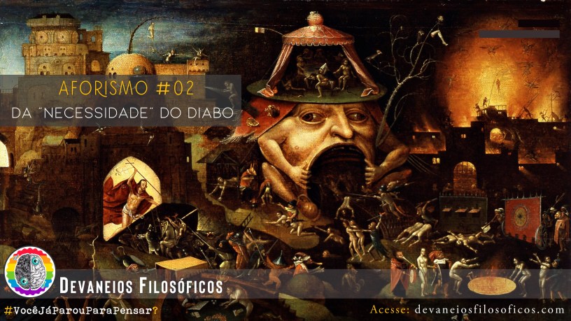 #02 – da necessidade do diabo. Considerando a ideia da existência de Deus como uma realidade ocidental cuja sombra não tem previsão de deixar a humanidade, e que esse Deus ainda figura como um modelo de retidão e de dignidade para muitas pessoas, ele se transformou [ou, melhor, foi pelo humanos transformado] em perfeição – seja lá o que isso signifique; ele virou um conceito. Mas conceitos endurecidos geralmente viram uma moral – e raras são as moralidades que atuam sozinhas, sem a necessidade de um antagonista que as justifique, ou de uma parede que lhes sirva de projetor. Fica, assim, uma lacuna, uma necessidade de criar a culpa e o culpado, num movimento pendular que nada resolve em termos práticos e profundos, mas que intitula o momento como resolvido e que passa adiante os fantasmas do questionamento e do aprendizado; ruma-se a um novo erro. Se, então, dizer-se culpado é pretender encerrar uma constatação nela mesma, se é querer dar por conhecida a causa, por entendido o efeito e todo o restante, alguém que representa a perfeição jamais poderia ocupar o posto de acusado ou de condenado. Aconteceu que, num dado momento da história da humanidade, logo que surgiram os primeiros humanos, as pessoas começaram a praticar tantas ações medíocres e a fracassar tanto em seus projetos existenciais que inventaram o Diabo para culpá-lo pelo seus atos. E assim acreditaram fortemente que não precisariam mudar de atitude. É como se o Diabo fosse necessário para manter blindada a ignorância e para não mostrar o quanto se é passível ao erro. Num percurso reducionista, porém ilustrativo temos: você pede algo para Deus, ele não te responde; seu empreendimento fracassa; você não aprende a analisar o erro; precisa de um novo rumo, mas não consegue prosseguir com o sentimento aterrador da culpa e da vergonha; então, cria-se o Diabo como desculpa no mesmo momento em que ele vira o culpado de um crime que nunca cometeu. A sua inocência é declarada por um lado pela sua ingenuidade e por outro pelo mal comportamento alheio – um alheio que só existe na mente criativa e medrosa.
