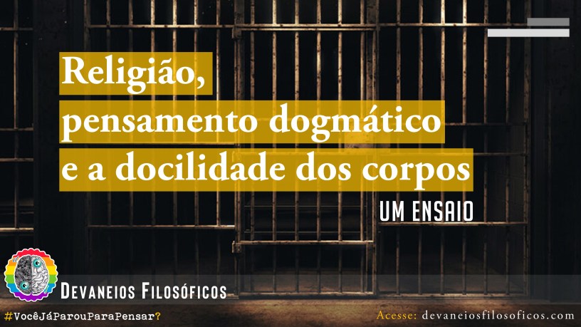 Por fim, poderia até surgir um questionamento, dizendo que essa docilização do corpo e o dogmatismo não são exclusividades da Religião. E esse é um questionamento válido! A religião existe não enquanto uma instituição isolada no tempo e no espaço. Ela atua política, social e culturalmente em diferentes grupos humanos. Logo, seus traços são observados em diferentes complexos da existência do grupo de Homo sapiens enquanto humanidade. Todavia, dizer mais de suas características nesse contexto específico torna mais pontual este ensaio. Como o pensamento dogmático está intrinsecamente dentro do pensamento religioso, avaliar suas consequências é uma sugestão que se faz aqui – além de ser o principal intuito justamente o de levantar questões sobre esse comportamento. Repostas prontas para isso não são prometidas; mas fazer perguntas, sim, é a ideia. E, nitidamente, antes de perguntar, é preciso observar o que está sendo feito para que as dúvidas surjam com mais qualidade. Pensar em autoridade, soberania, resistência e em críticas ao modelo social vigente é, sem dúvidas, pôr em perigo os ideais contemporâneos.